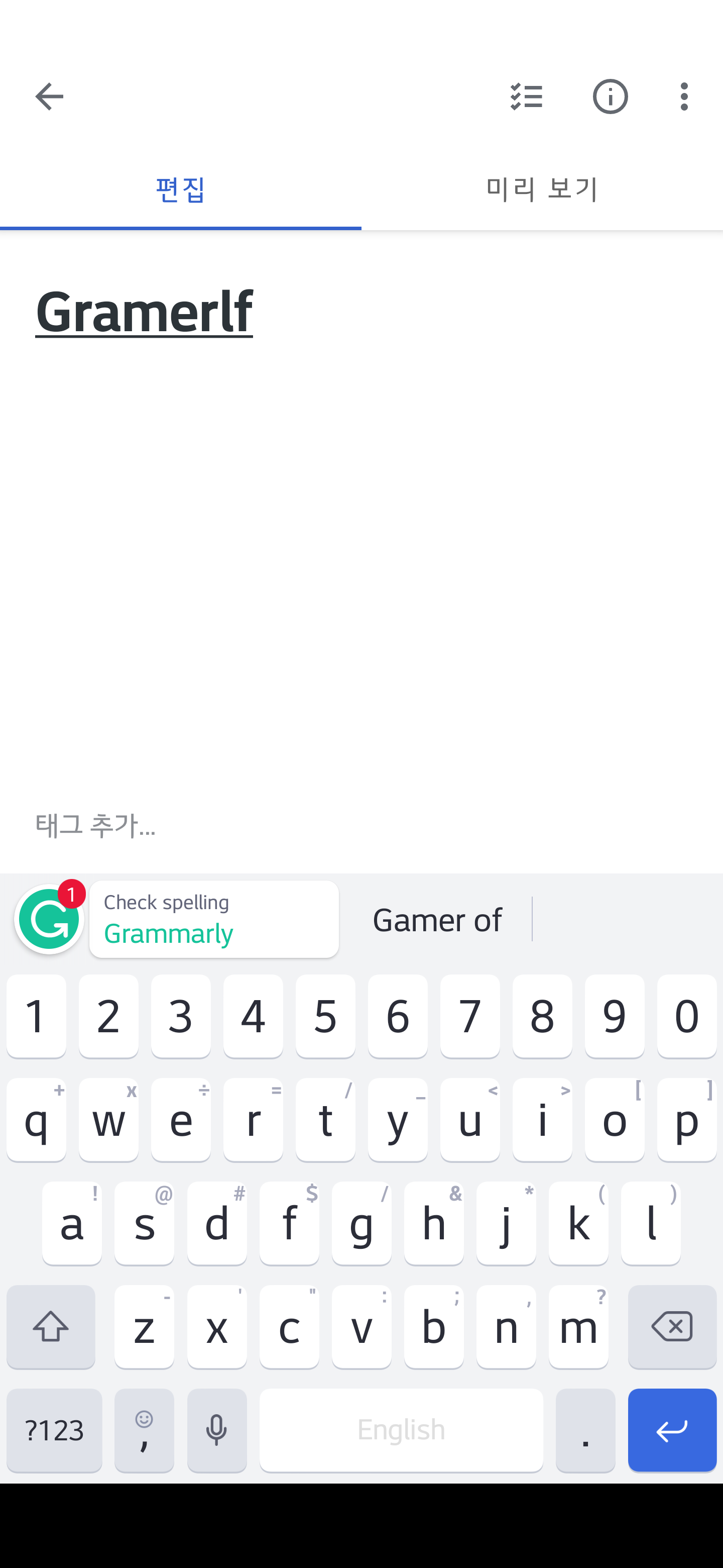 나는 영어로 메시지를 주고 받는 일이 매우 흔하기 때문에 영어 입력도 매우 중요하다. 특히 그냥 웹서핑 용도의 타블렛이 아닌 메신저를 설치한 폰에서는 더 그렇다. 그래서 영어 키보드는 Grammarly를 쓰고 싶은데 이게 언어 전환이 불편한게 문제다.