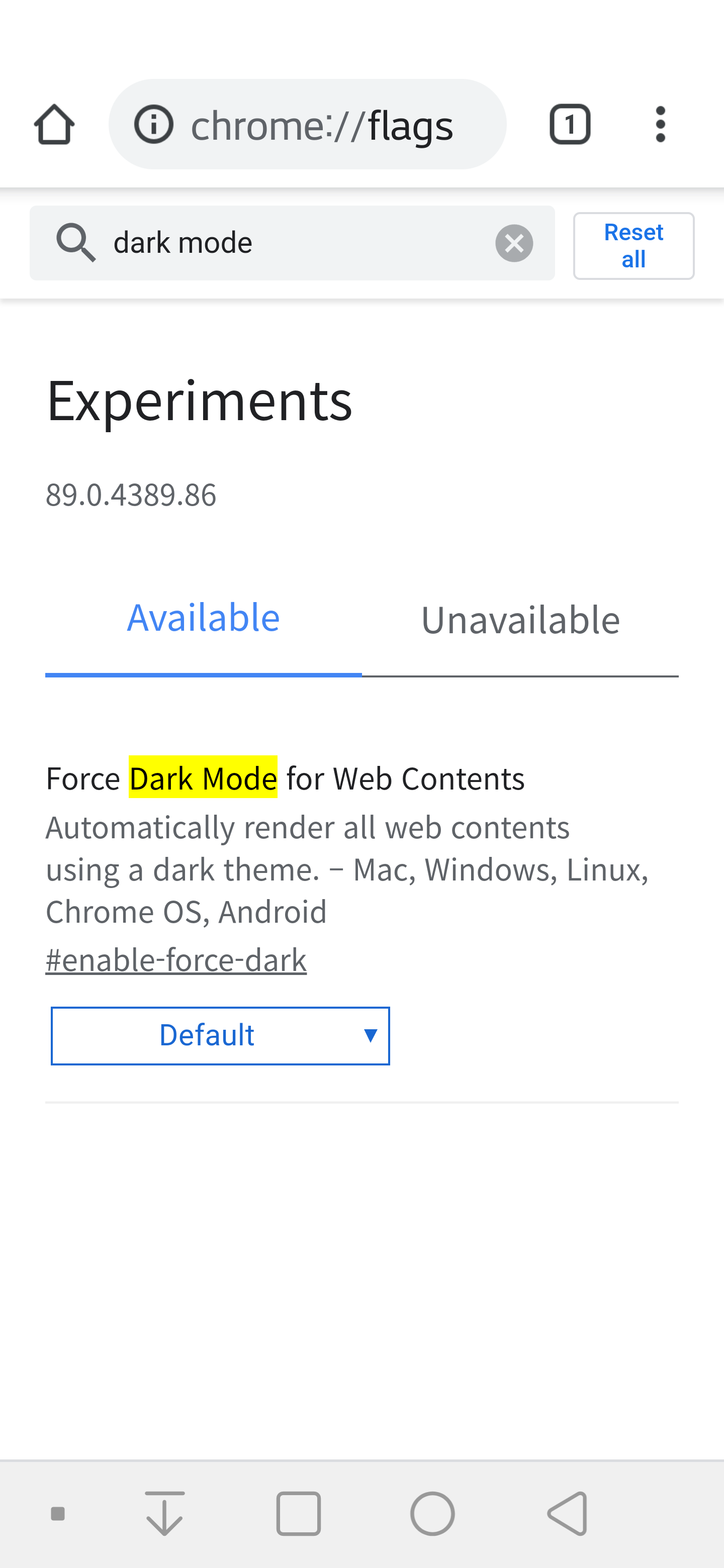 그리고 'dark mode'로 검색하면 웹 콘덴츠를 강제로 다크모드로 바꿔주는 기능이 뜬다.