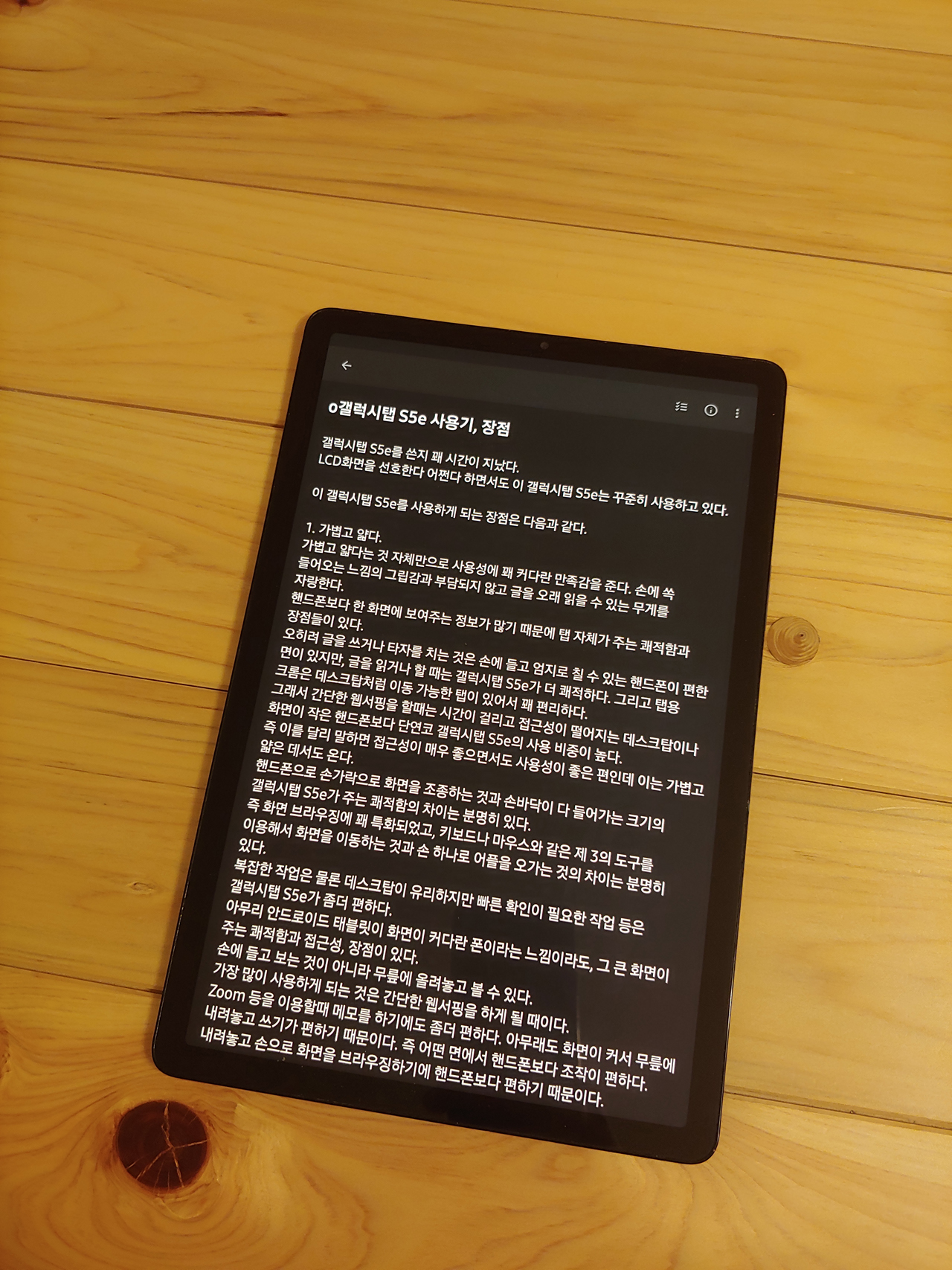 LCD화면을 선호한다 어쩐다 하면서도 이 갤럭시탭 S5e는 꾸준히 사용하고 있다.